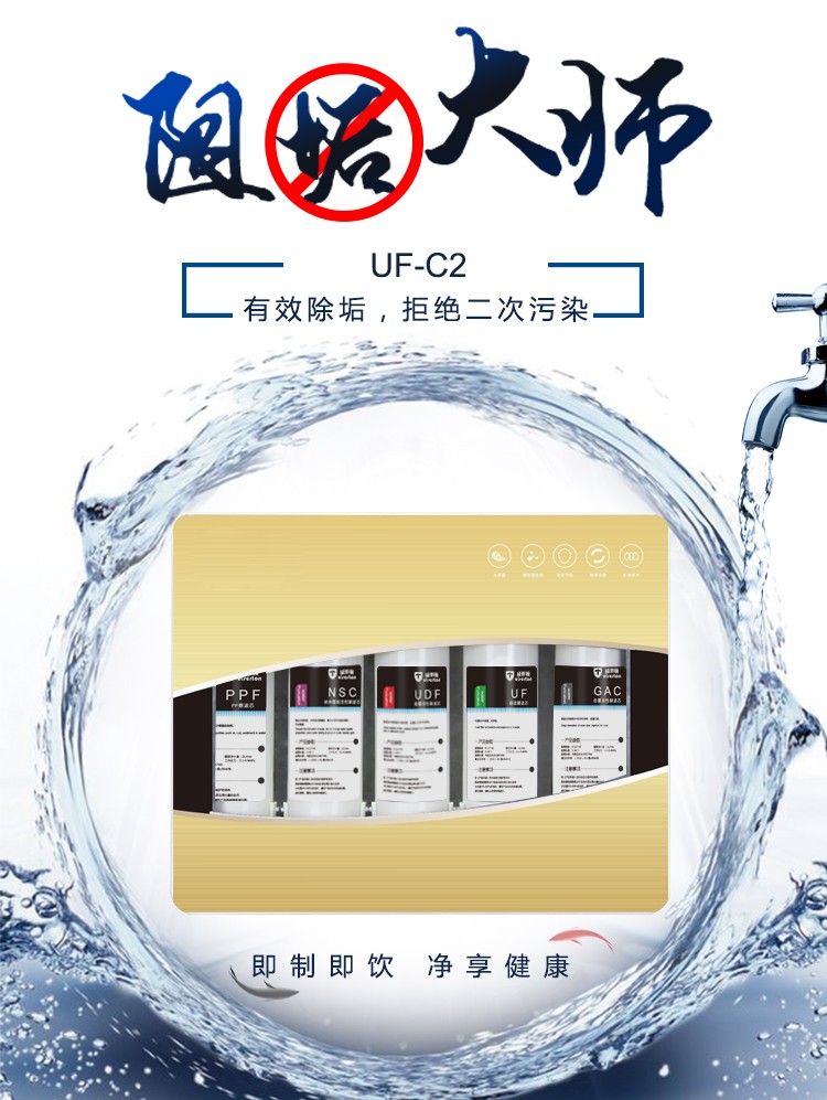 PP棉+UDF颗粒活性炭+CTO烧结炭+UF超滤膜+GAC后置活性炭